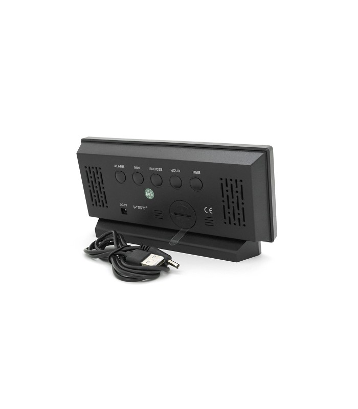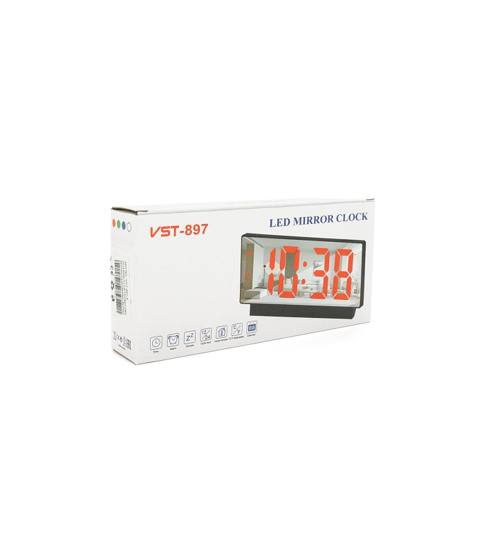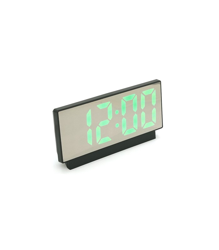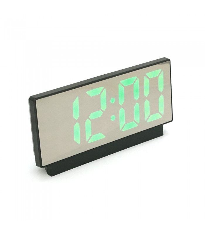 Электронные часы VST-897 имеют зеркальный дисплей, с датчиком температуры и влажности, функцией будильника, питание от кабеля USB и зеленого цвета.