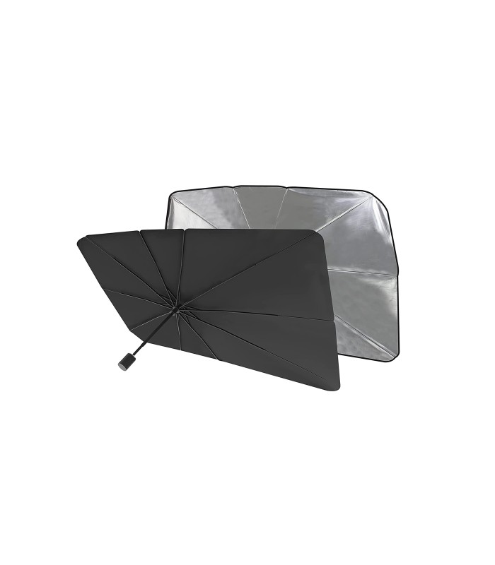 Внутренняя часть зонта - черная, что затемняет салон при его использовании, внешняя - серебристая, способствует отражению солнечных лучей, тем самым значительно снижая температуру воздуха в салоне.