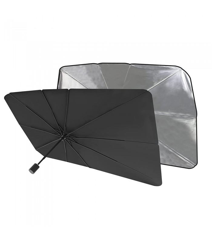 Автомобільна парасолька виконана у вигляді звичного нам парасольки - але в розкритому вигляді він ідеально лягає під лобове скло, закриваючи і відбиваючи при цьому сонячні промені, що допоможе уникнути вигоряння та шкідливого впливу ультрафіолету на внутрішню обшивку автомобіля, а також знизити температуру в салоні.