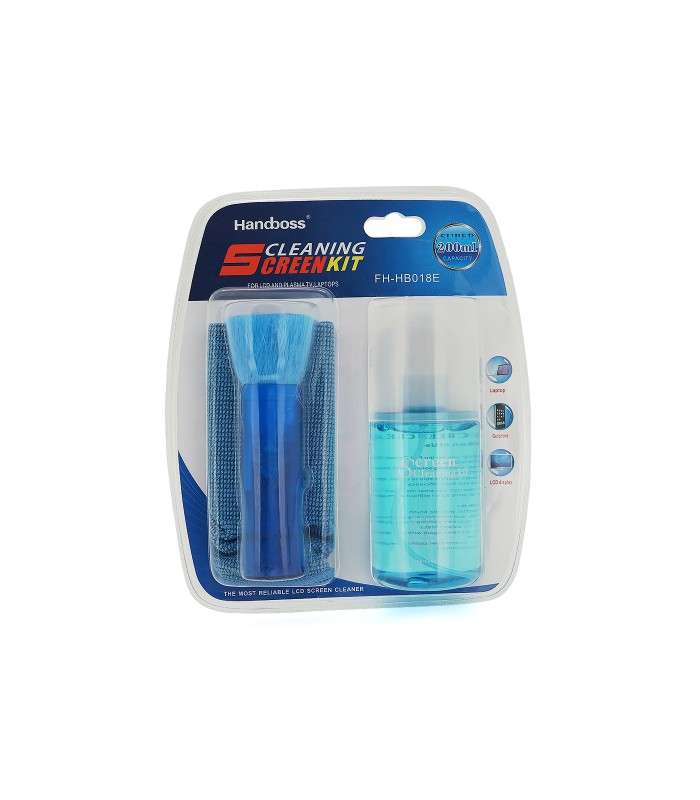Набор для чистки экрана 3 в 1 от Handboss включает в себя спрей, щетку и салфетку из микрофибры и предназначен для безопасной и эффективной очистки экранов различных устройств.