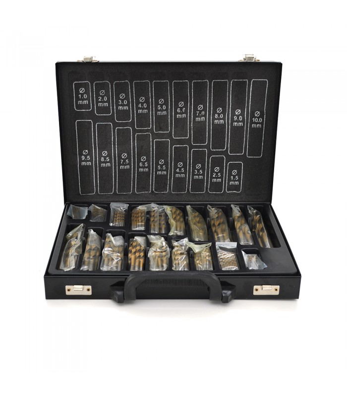диаметры сверл/ рабочая длинна/общая длинна – 1/12/34, 1.5/20/43, 2/24/49, 2.5/30/57, 3/33/61, 3.5/39/70, 4/43/75, 4.5/47/80, 5/52/86, 5.5/57/93, 6/57/93, 6.5/93/101, 7/69/109, 7,5/69/109, 8/75/117, 8,5/75/117, 9/81/125, 9,5/81/125, 10/87/133