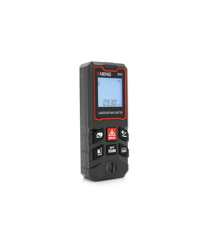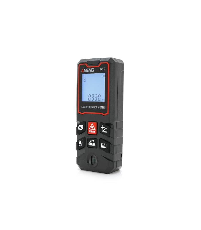 Лазерный дальномер ANENG AN-B80 оснащен цифровым ЖК-дисплеем с подсветкой для удобства чтения данных в любых условиях освещения. Он поддерживает функции быстрого измерения расстояния, площади, объема и вычисления по теореме Пифагора. Устройство также предоставляет возможность сохранять до 30 наборов данных.