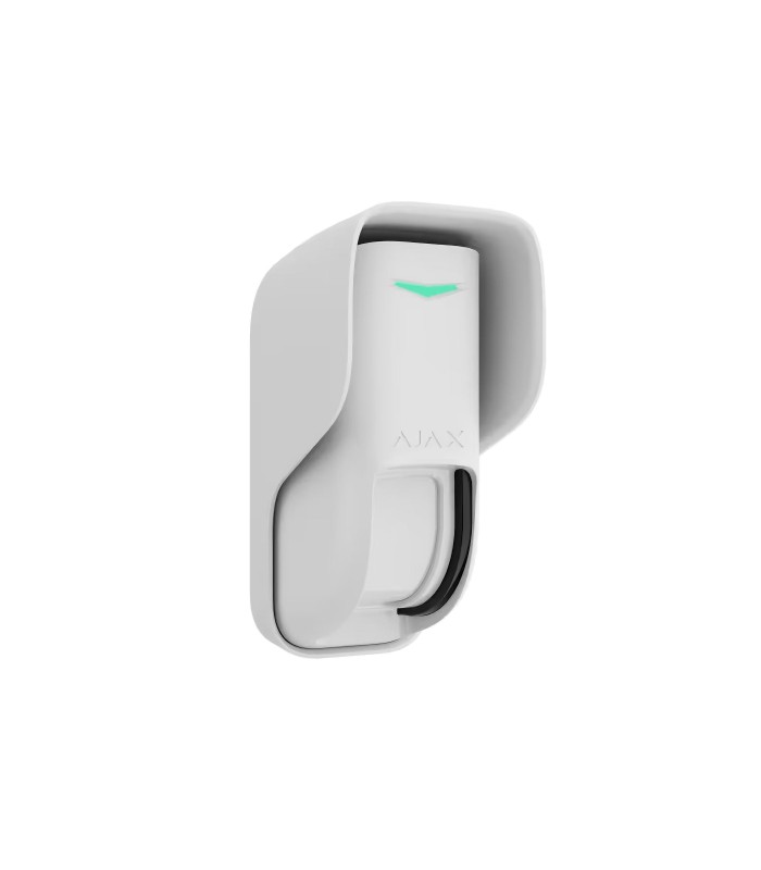 Беспроводной уличный датчик движения типа штора Ajax Curtain Outdoor Jeweller White с двойной технологией обнаружения – 2 ИК-сенсора и микроволновой сенсор, с иммунитетом к животным ростом до 100 см, дальностью связи с централью до 1700 м, дальностью обнаружения движения до 8-12 м