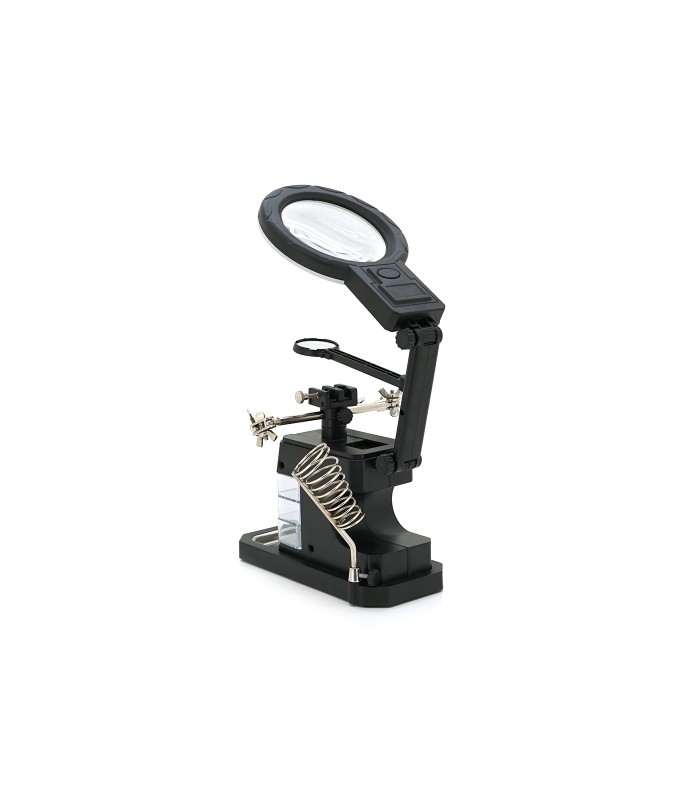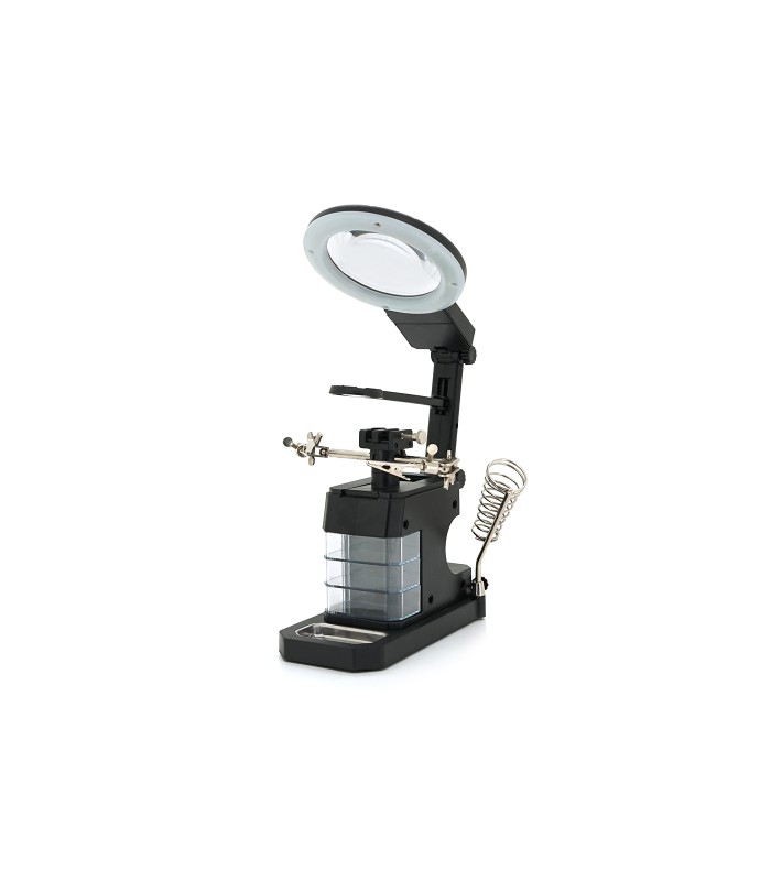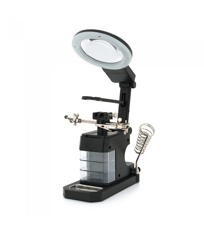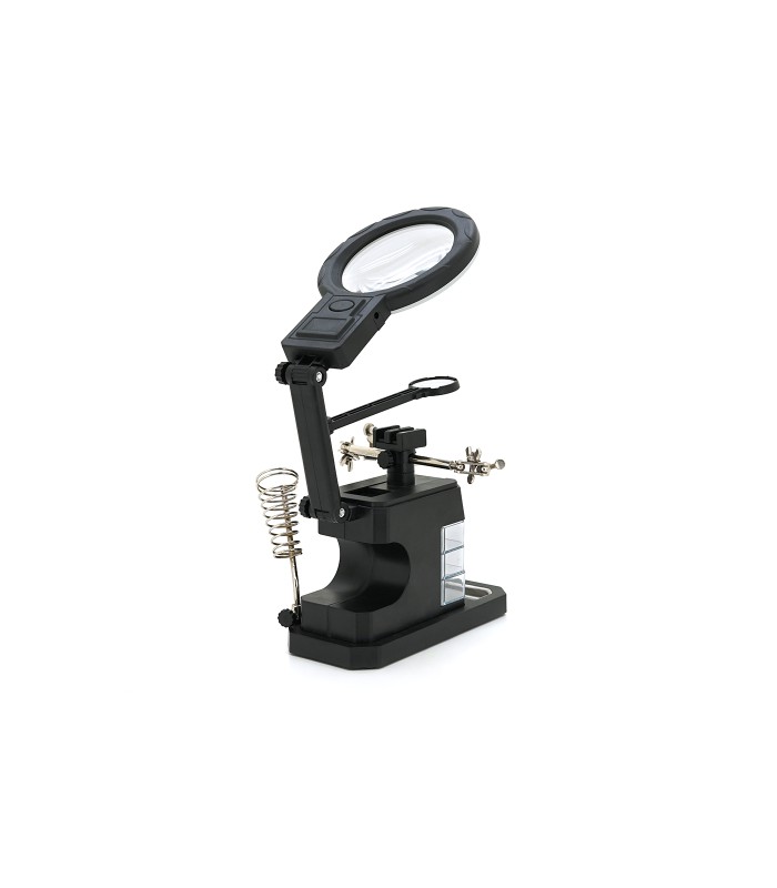 Держатель паяльный 'третья рука' TE-803 — это многофункциональная рабочая станция для точных электротехнических и монтажных работ. Устройство объединяет систему оптического контроля с возможностью надежной фиксации деталей, создавая эргономичное рабочее пространство для профессионалов и любителей.