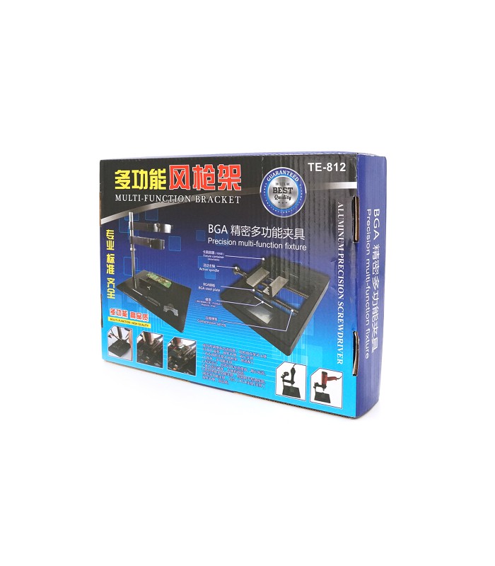 Держатель для фена 'третья рука' TE-812 — это профессиональное приспособление для безопасного и эффективного использования термовоздушной паяльной станции. Устройство обеспечивает надежную фиксацию паяльного фена в рабочем положении, освобождая обе руки монтажника для манипуляций с электронными компонентами.