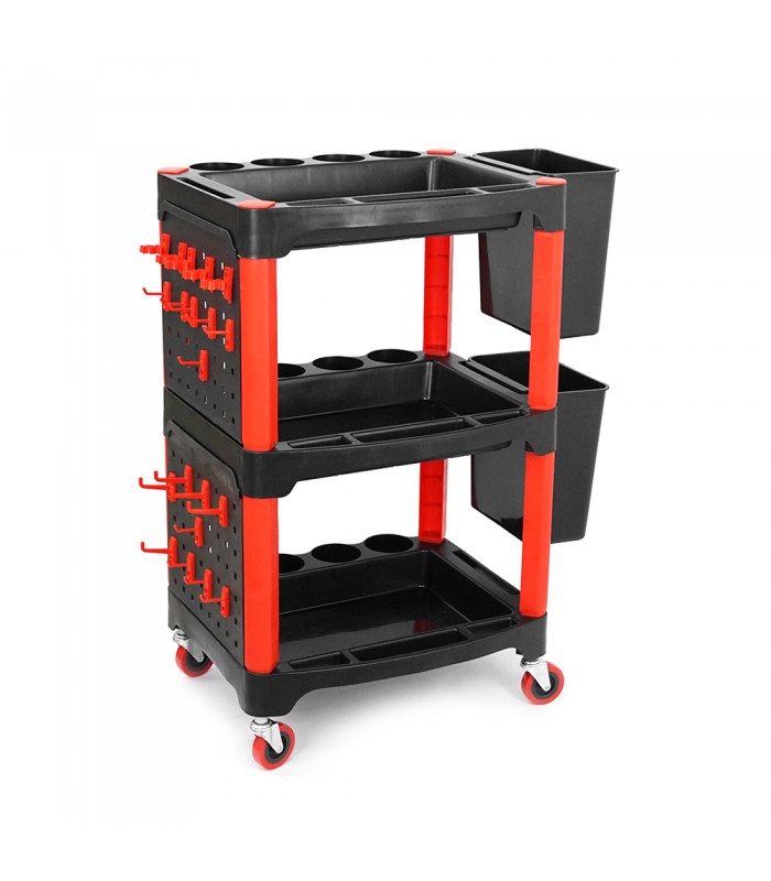 Пластиковий візок для інструментів 88х54, 8х39мм + відро, гачки, чорний-червоний