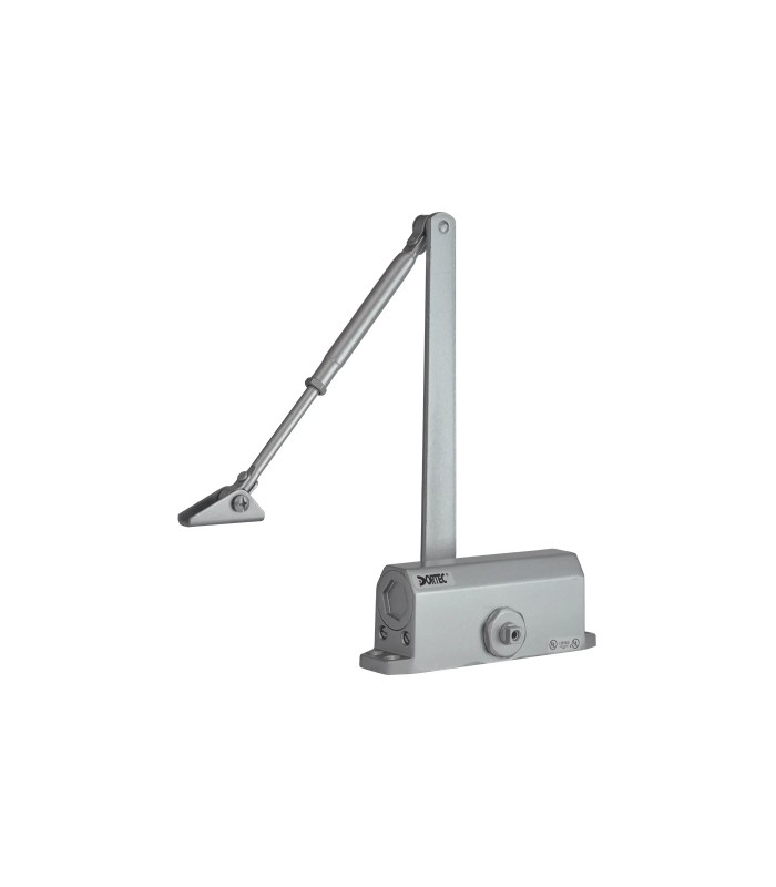 Дверной доводчик Dortec DT-63H Silver со складным рычагом, с функцией удержания двери в открытом положении под углом 85°. Масса дверного полотна 45-65 кг.