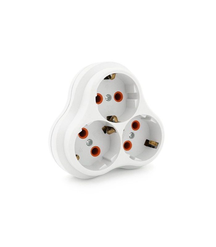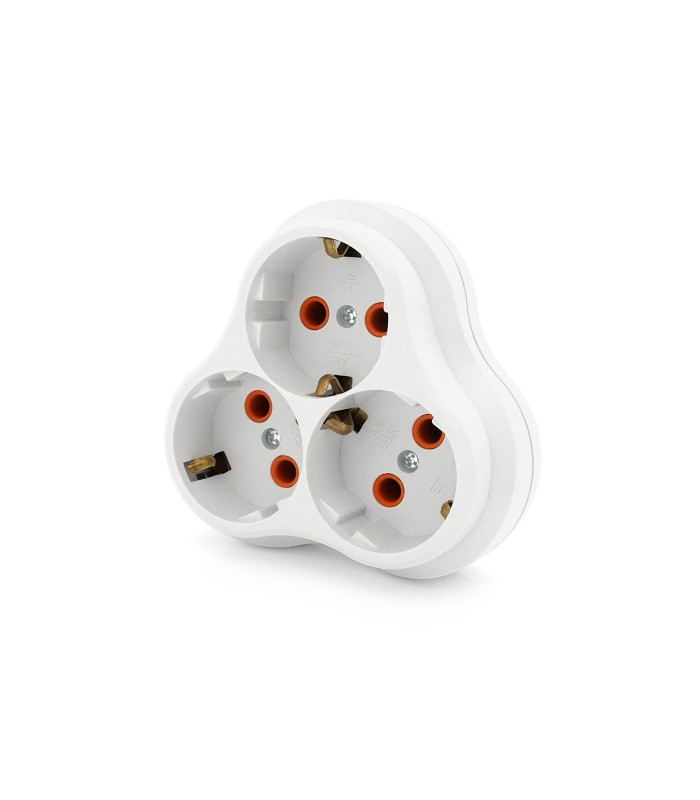 Розетка тройник с заземлением AK303, одно из которых - обеспечение надежного контакта, защита пальцев от прикосновения к токоведущим частям, надежную изоляцию токоведущих элементов друг от друга. Розетки изготовлены из самозатухающих, пожаробезопасных материалов, которые устойчивы к старению, со временем не меняют цвет, легко очищаются, имеют красивый дизайн.