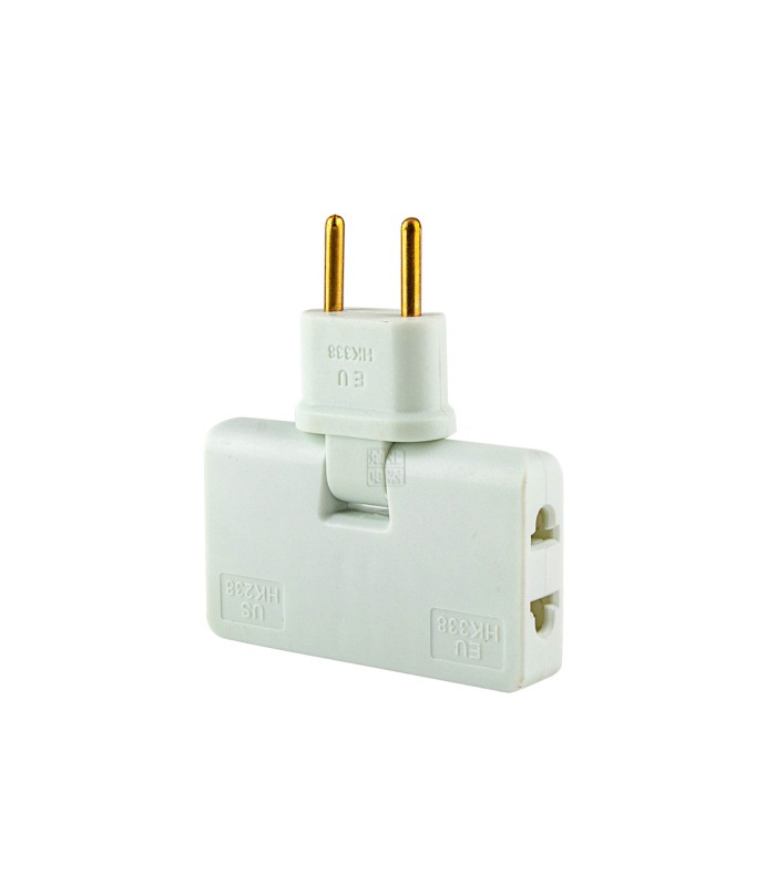 Тройник + переходник 3 in 1, UK/US-EU, 220В, 10А, поворотный 180°, White