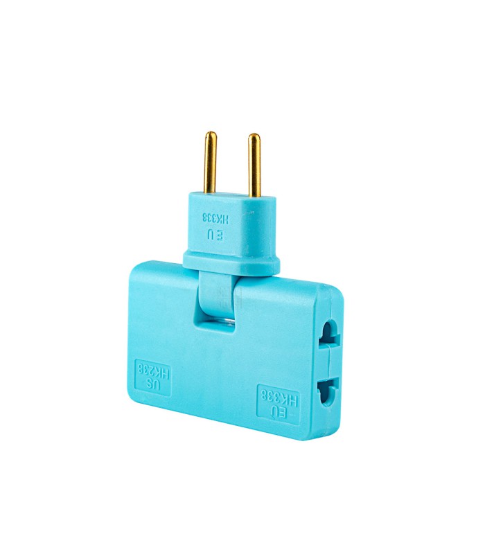 Тройник + переходник 3 in 1, UK/US-EU, 220В, 10А, поворотный 180°, Blue