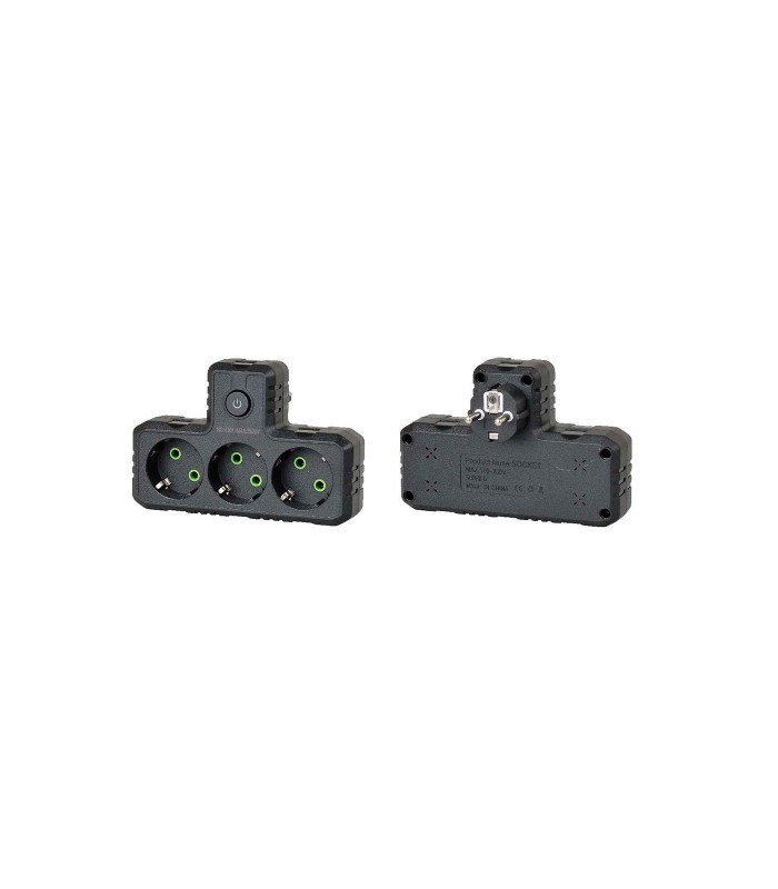 Розетка тройникТ-образнаый с заземлением F301-Black, 3 розетки, 2500W, 10A, 110-250V~Max, Blister