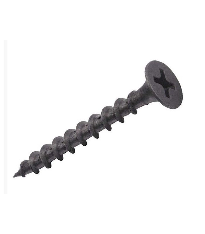 Шуруп сделан из стали, плоскость оксидирована. Наконечник шурупа острый, головка потай, с крестообразным шлицем Phillips
