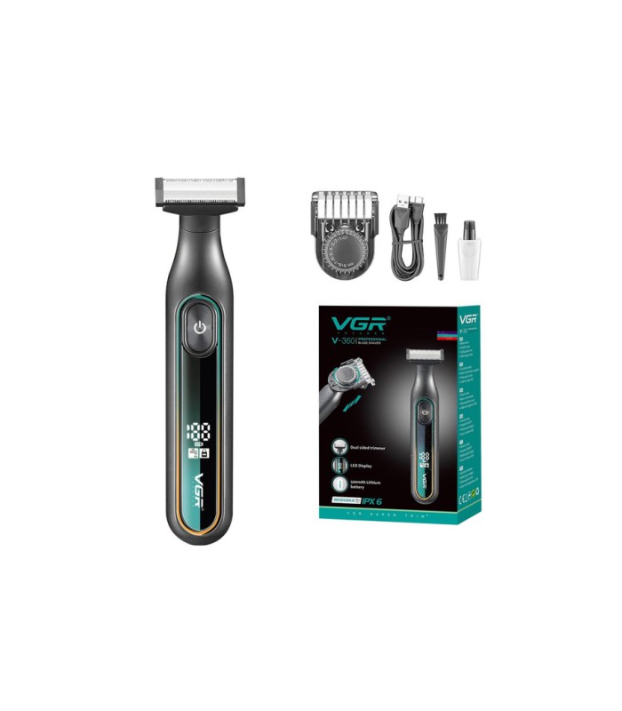 Электробритва VGR V-360 GREEN, универсальная насадка с регулировкой высоты, LED display, Box
