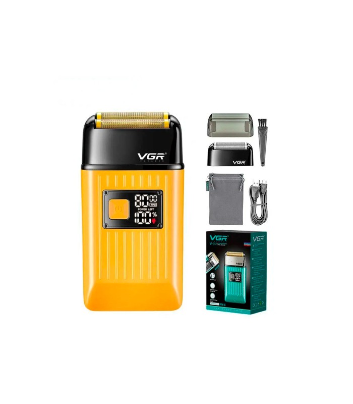 Электробритва VGR V-357 GOLD, двойное лезвие, 2 насадки, выдвижной триммер, IPX6, LED display, Box