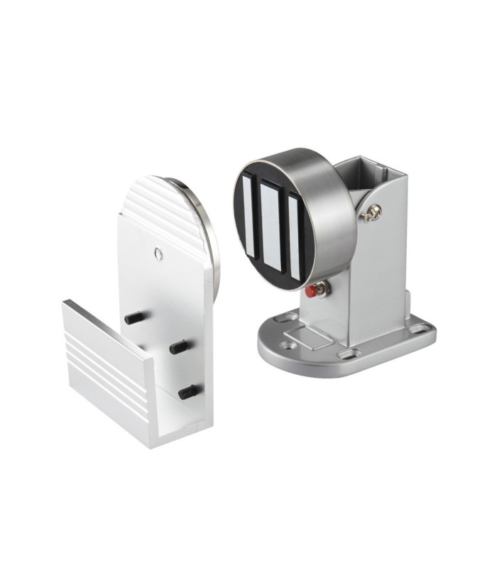 Электромагнитный замок HC802 предназначен для установки на стеклянные двери и может быть использован как напольный, так и настенный. Он имеет угол открытия 90°, усилие 60кг и работает при напряжении 12/24v с потреблением тока 60/120mA.