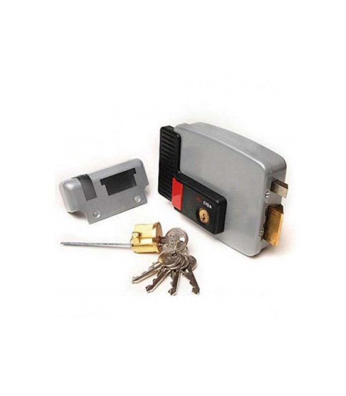 Открывается импульсом электрического тока (12V), а также ключом или с помощью встроенной механической кнопки. В комплекте прилагается 5 ключей.