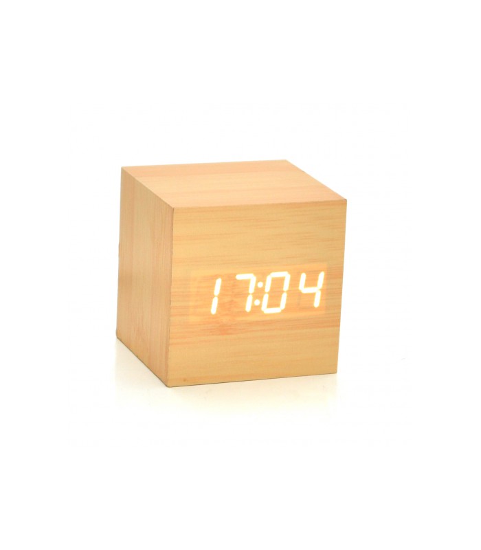 Электронные квадратные часы с будильником, деревянные, бежевые