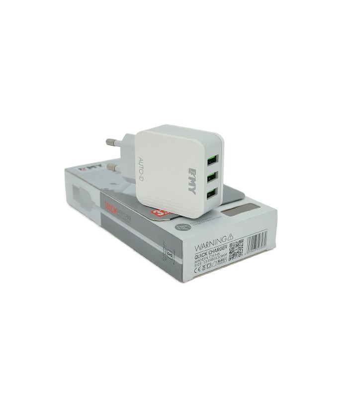 Компактное и удобное зарядное устройство с кабелем в комплекте, предназначенное для быстрой и безопасной зарядки мобильных устройств. Идеальное решение для дома, офиса или путешествий благодаря универсальному входному напряжению и трем USB-портам.