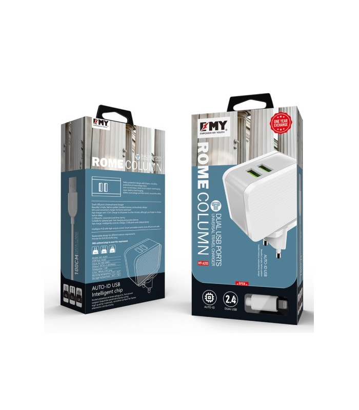 Компактное и удобное зарядное устройство с кабелем в комплекте, предназначенное для быстрой и безопасной зарядки мобильных устройств. Идеальное решение для дома, офиса или путешествий благодаря универсальному входному напряжению и двум USB-портам.