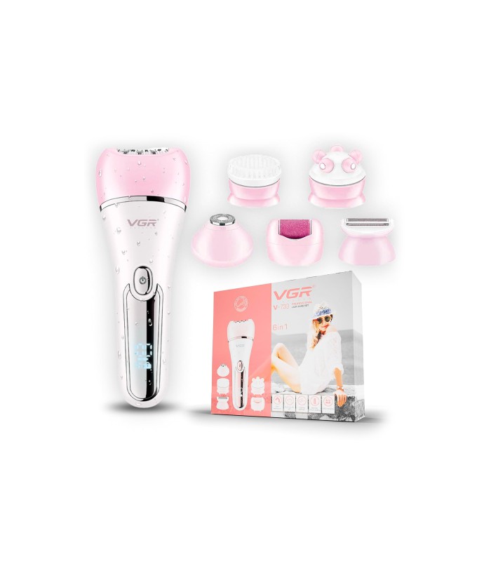 Эпилятор VGR 6 в 1 V-733 PINK, 12 насадок, IPX7, LED display, Box