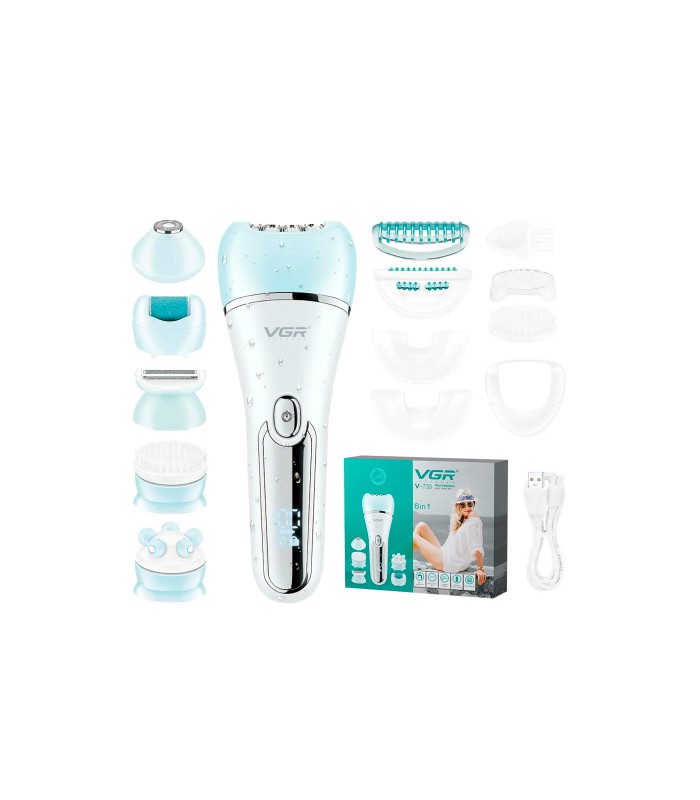 Эпилятор VGR 6 в 1 V-733 BLUE, 12 насадок, IPX7, LED display, Box