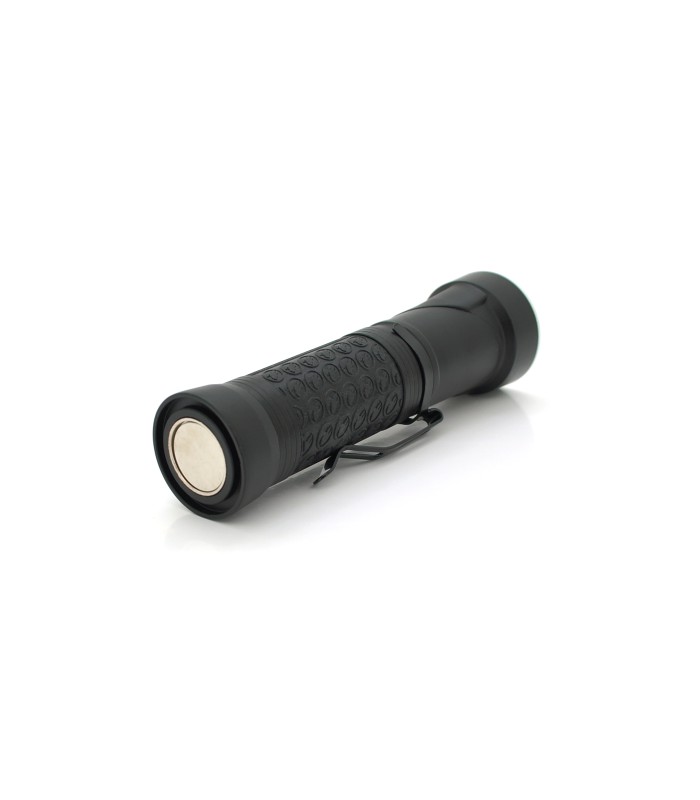 Фонарик оснащен прижимной металлической клипсой, а на торце фонаря встроенный магнит, с помощью которого можно прикрепить фонарь к металлической поверхности. Также особенностью этой модели является поворот головки фонаря на 90 градусов, что позволяет изменять направление светового потока.