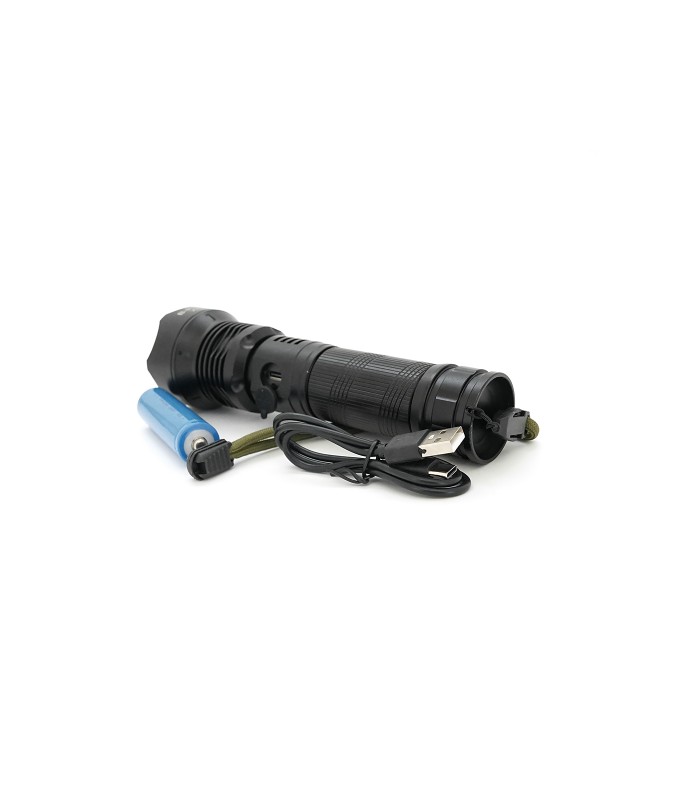 Фонарик BP-X718 P90, Zoom, 1 режим, корпус металл, аккум 18650, индикация заряда, USB кабель, BOX