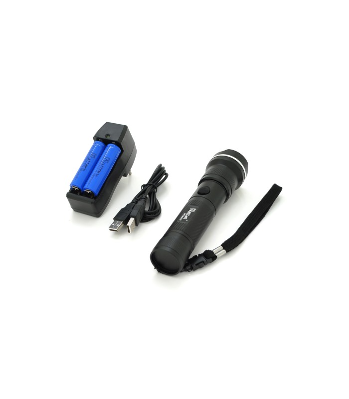 Комплектация: фонарь, аккумуляторы 2 штуки, , сетевое зарядное устройство для АКБ 18650, кабель USB-USB