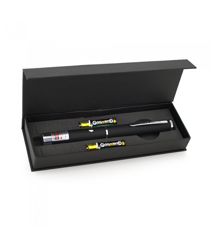 Лазерная указка Laser M01 оснащена красным лазером и работает от двух батареек типа AAA.