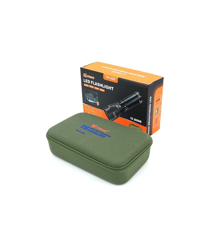 Фонарь поисковый YEMAO YM-G600 LED PM60, 4 режима, индикация заряда, питание от 4(2*18650), IP65, USB кабель, 325х205х100мм, 1,6