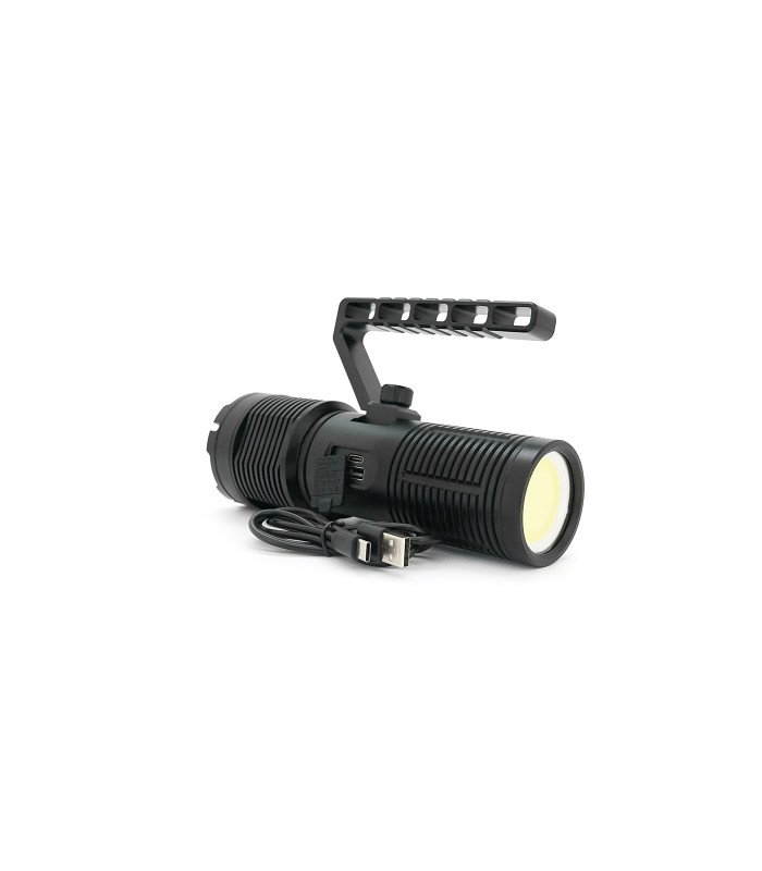 Фонарь поисковый BP-2303 LED PM60, 5 режимов, индикация заряда, питание от 3*18650, IP65, USB кабель, 255х145х65мм, 0,860кг, Bla