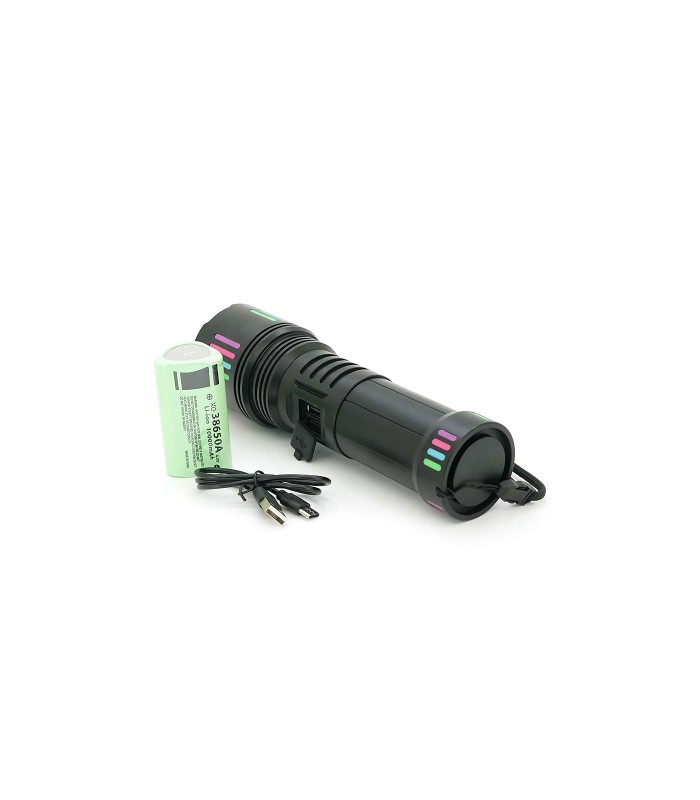 Фонарь поисковый BP-W503 LED PM60, 5 режимов, индикация заряда, питание от 3*18650, IP65, USB кабель, 230х130х70мм, 0,850кг, Bla