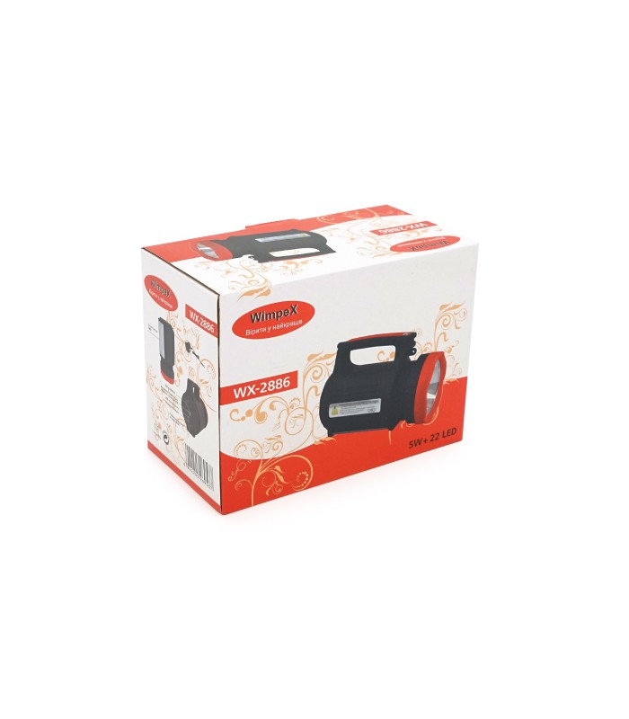 Фонарь переносной WX-2886, 1+22 LED, 2+1 режим, встроенный аккумулятор 4В 5,5А, СЗУ, ремешок, Box
