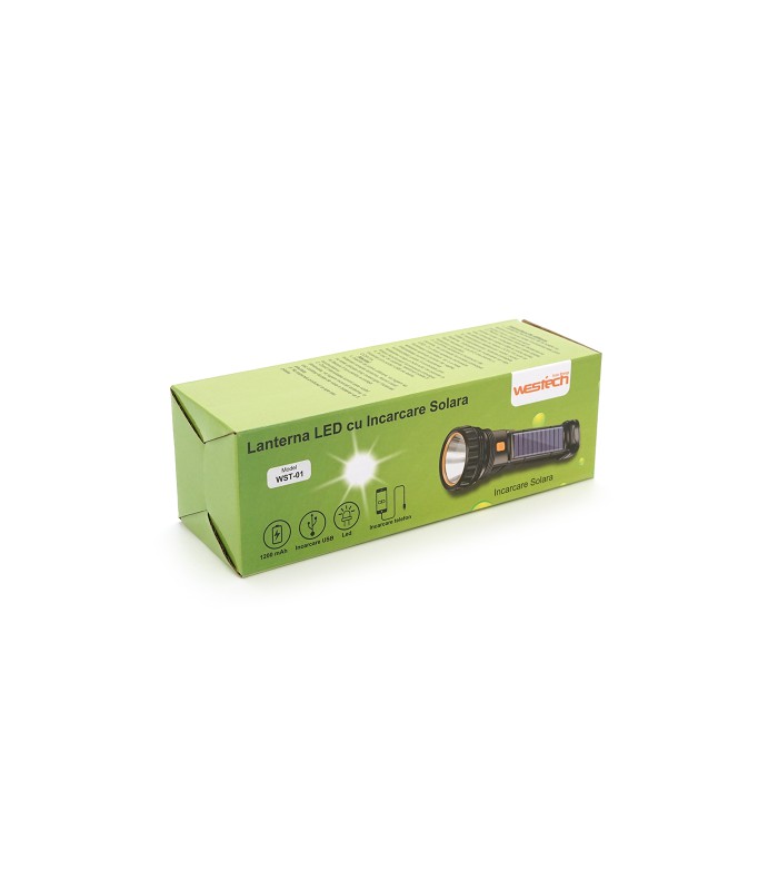 Фонарь ручной WESTECH – надежный и удобный источник света с встроенным аккумулятором емкостью 1200mah. Благодаря солнечной панели и светодиодам COB, этот фонарь обеспечит яркое освещение в любое время суток. Выбирайте из трех режимов освещения в зависимости от ваших потребностей. Комплект включает в себя USB кабель для удобной зарядки. Цвет: черный.