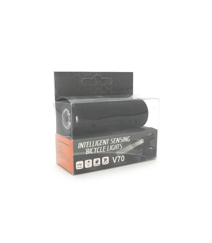 Фонарик велосипедный HY-V70, 4 режима, встроенный аккум, индикация заряда, USB кабель, Blister-Box