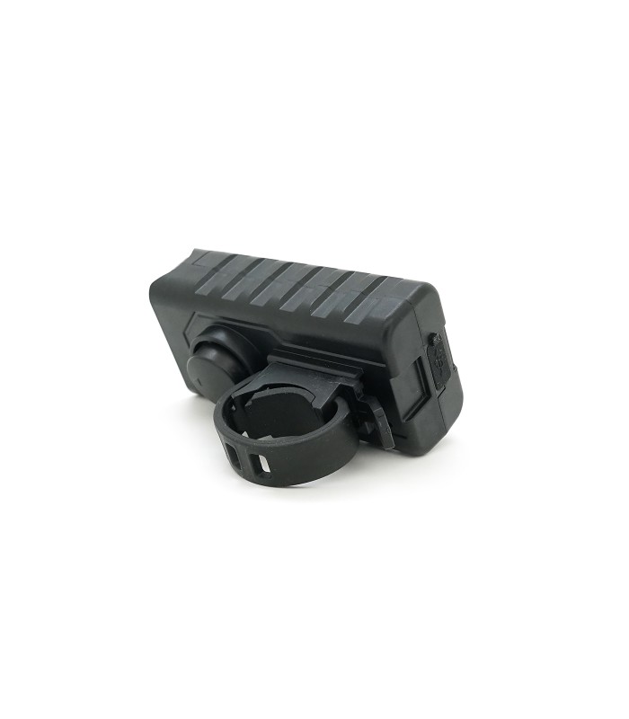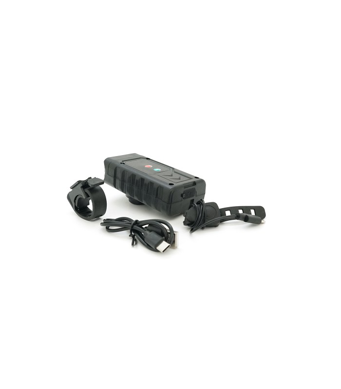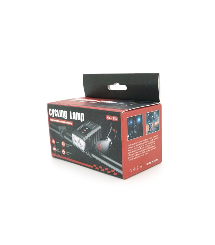 Фонарик велосипедный HY-7518, 4 режима+сигнал, встроенный аккум, индикация заряда, USB кабель, BOX