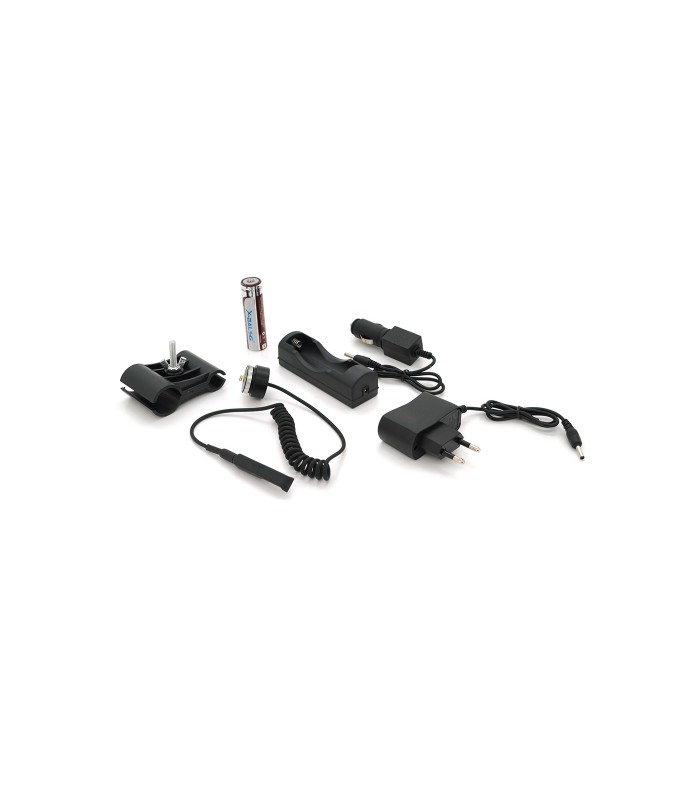 Подствольный фонарик Q-911-T6 - это водостойкий и ударостойкий фонарик, оснащенный светодиодом Cree XML-T. Он имеет алюминиевый корпус и поставляется с зарядным устройством и адаптером для зарядки.