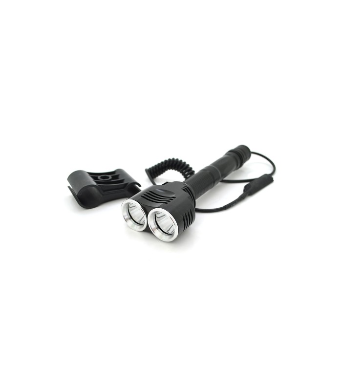 Особенности: кнопка управления на корпусе , кабель с двумя выносными кнопками , одна переключение режимов , вторая работа фонаря при зажатой кнопке