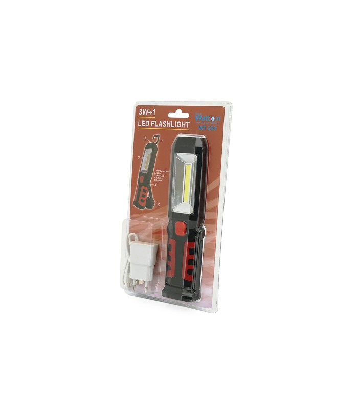 Фонарик Watton WT-293 использует новую технологию COB LED, обеспечивающую яркое освещение. Устройство оснащено двумя мощными магнитами на нижней части корпуса для крепления на металлической поверхности.