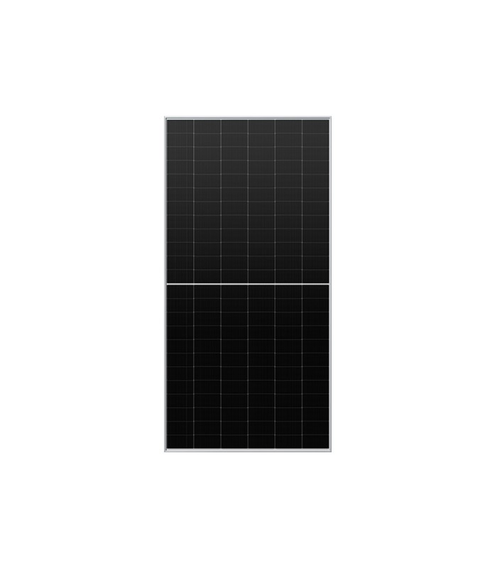 Модель обладает номинальной мощностью 645 Вт и высоким коэффициентом полезного действия — до 24.4%. Использование 144 половинчатых ячеек повышает устойчивость к перегреву и снижает потери при затенении. Панель выполнена в прочном алюминиевом корпусе и защищена с обеих сторон закалённым стеклом, устойчивым к механическим и климатическим воздействиям. За счёт высокой системной мощности и длительного срока службы панель особенно эффективна в проектах с ограниченной площадью.