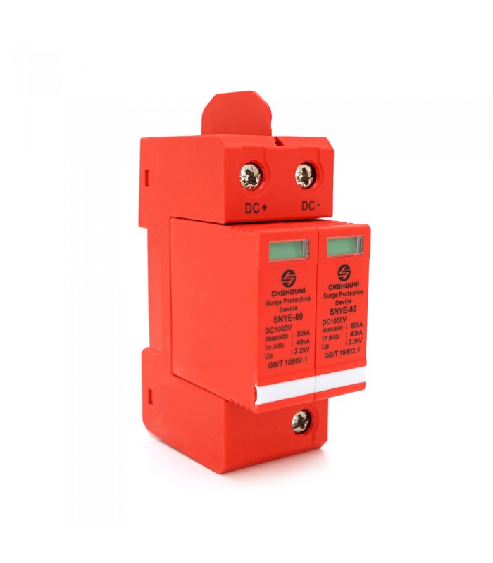 Фотогальванічний захист від перенапруги постійного струму моделі SNYE-80 2P -1000V, з надійними 80kA (зі змінними блоками), є високоякісним пристроєм, розробленим для забезпечення безпеки та ефективної роботи сонячних батарей, діючи як надійний бар'єр від пошкоджень, спричинених перенапругою.