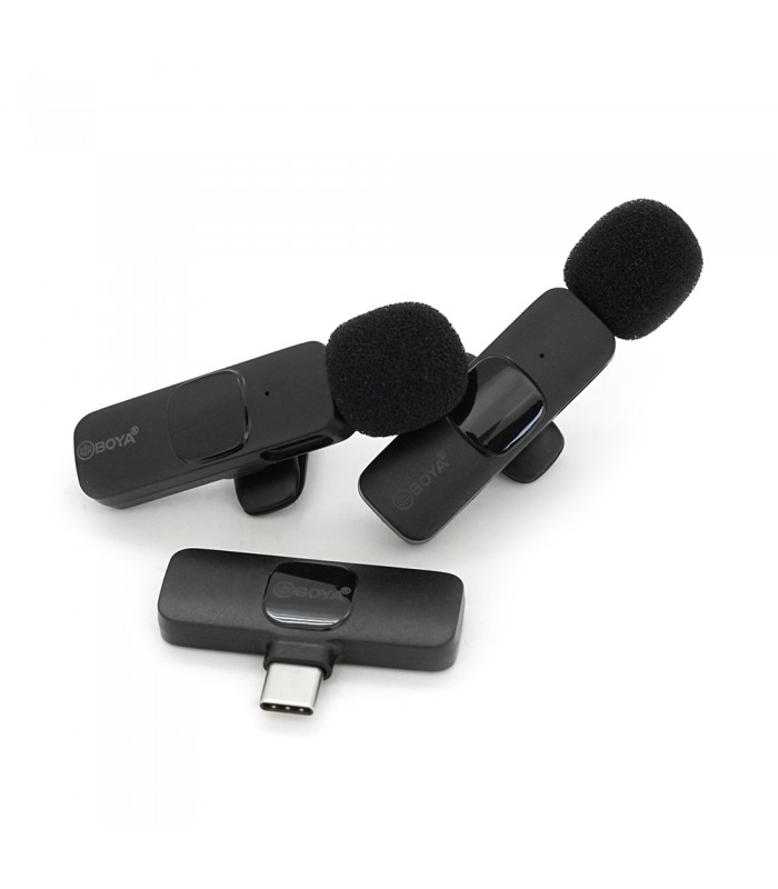 Петличний бездротовий мікрофон BOYA BY-MW3(2шт), роз'єм Type-C, вбудований акумулятор 80 mAh, Black, Box