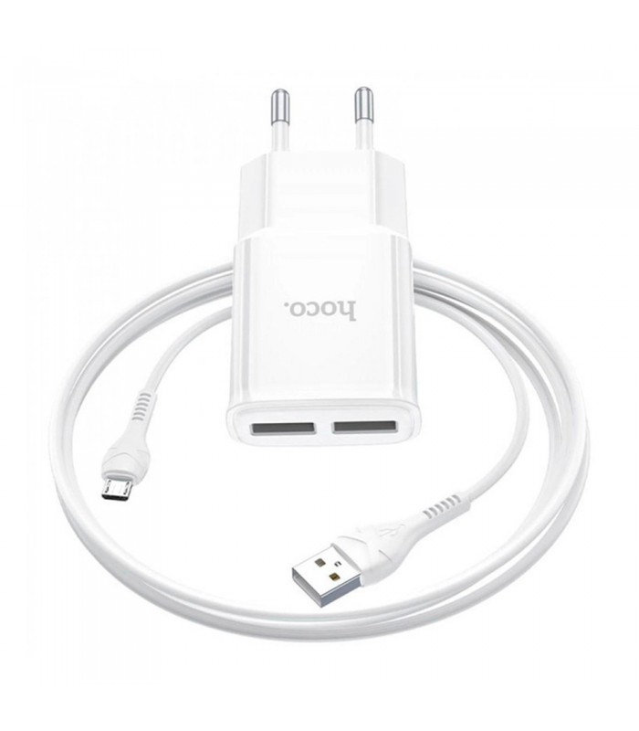 Набір СЗУ 110-240V HOCO C88A + кабель Micro, 2xUSB, 2.4A, кабель 1м, White, Box Новинка