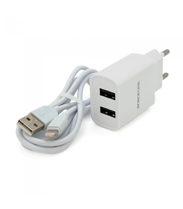 Набір BOROFONE BA53A СЗУ 2xUSB+ кабель Lighting, 2.1A, 1м, White, Blister Новинка