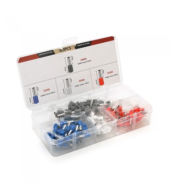 Набір клем/наконечників 200шт(E2508gr-50,E0508b-50,E1508-50.E4009bl-50)у боксі Новинка