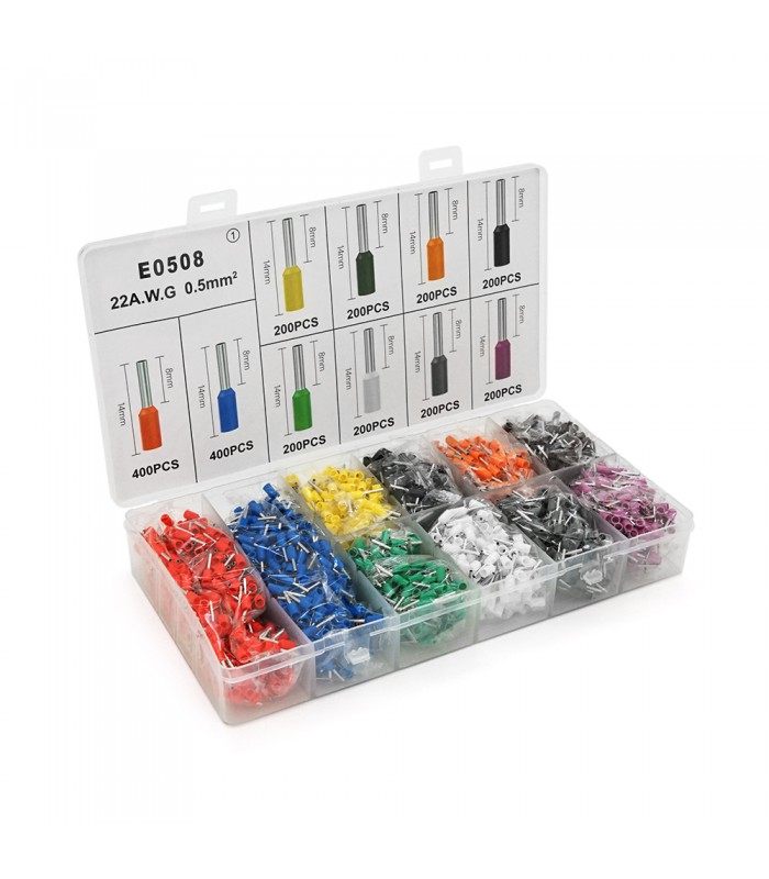 Набір клем/наконечників 2400шт VE0508 (R-400, B-400, Y-200, Bl-200, O-200, Br-200, G-200, W-200, Gr-200, V-200) у боксі
