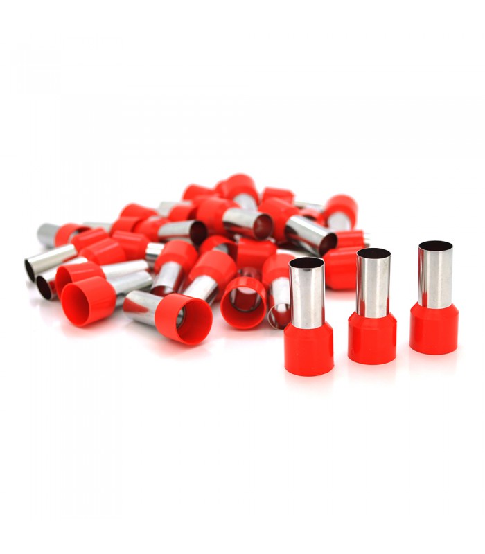 Опис: Кабельний наконечник VE50-20 призначений для затискання та ізоляції кабелю. Продукт поставляється упаковкою зі 100 штук.