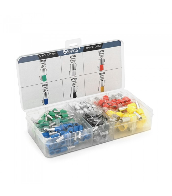Набір клем/наконечників 260шт(E2508g-60,E1012y-15,E1508bl-40,E4009b-40,E6010r-25.E7508w-80)у боксі
