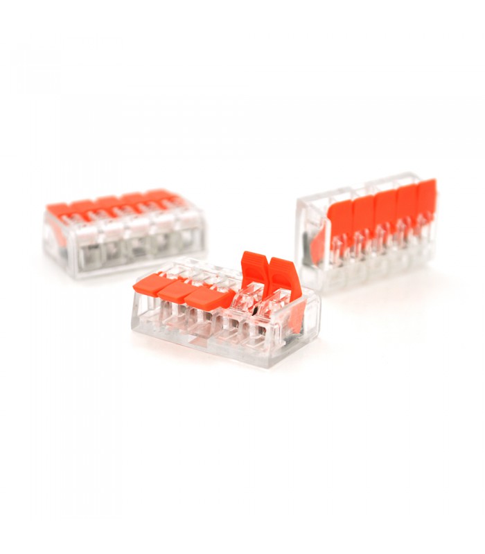 Клема з натискними затискачами 5-провідна аналог WAGO K221-415 для розподільчих коробок, 5-pin, прозоро-оранжева