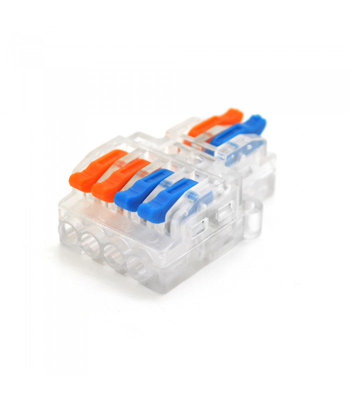 Клемна колодка з нажімнимі зажимами 2х4-проводу PCT-424 - призначена для виконання швидких електромонтажних робіт, підключення електроустаткування. Для того що б працювати з даної колодкою немає необхідності володіти понад знаннями і професійним інструментом, колодка універсальна і швидко з'єднає електропроводи, а також має здатність швидко розмикати контакт.